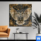 Acrylglasbild | Eule inmitten goldener Blätter | Rund