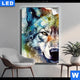 Canvalight® TEX Leuchtbild | Wolf mit bunten Farbspritzern No. 2 | Quadrat