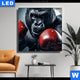 Canvalight® Leuchtbild | Gorilla mit roten Boxhandschuhen | Querformat