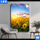 Canvalight® Leuchtbild | Leuchtend gelbe Sonnenblumen am Abend | Panorama