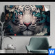 Spannbild | Weißer Tiger mit blauen Augen zwischen Blumen | Quadrat