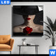 Canvalight® TEX Leuchtbild | Frau mit Hut & Rose | Schmal