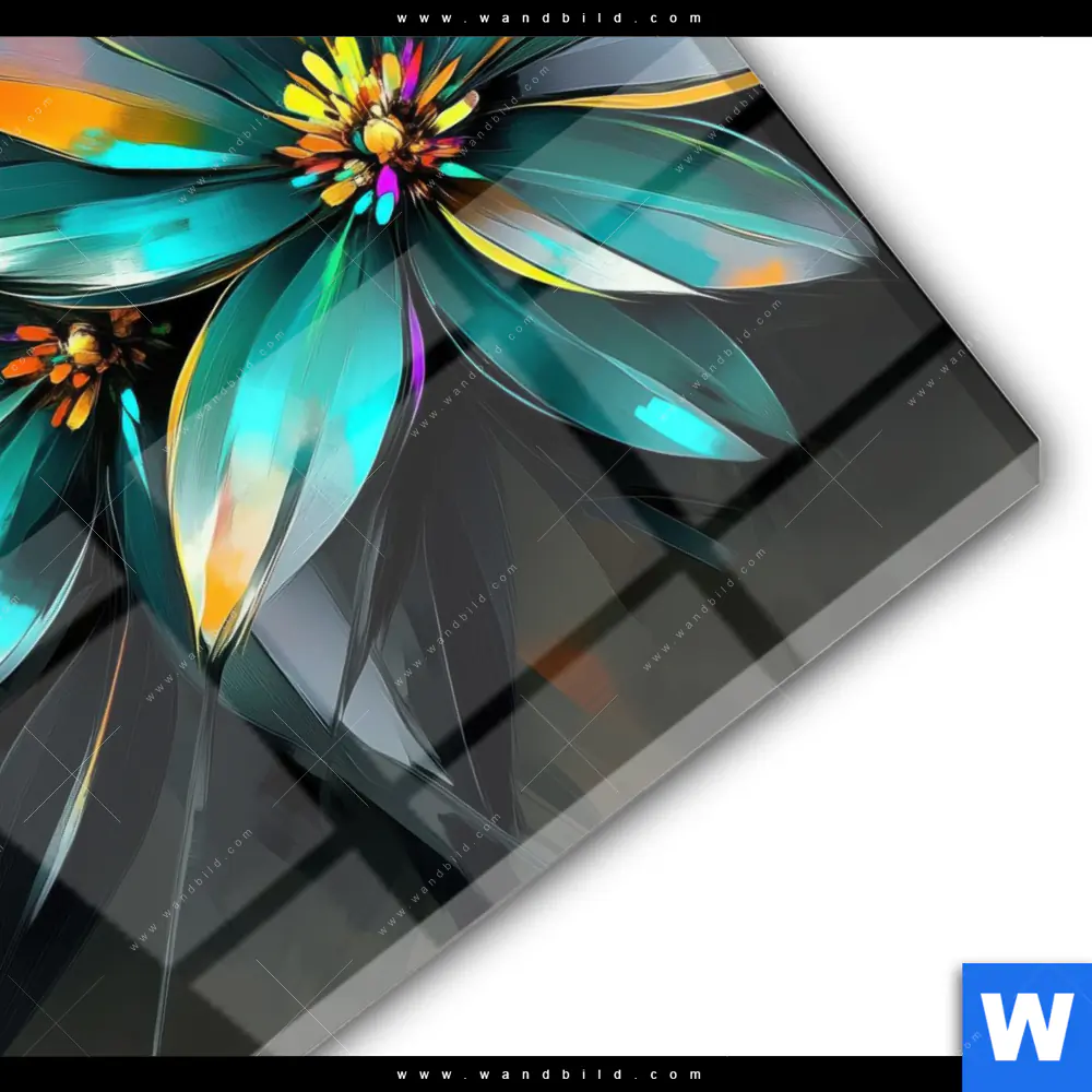 Acrylglasbild | Leuchtende Fantasieblüten | Quadrat