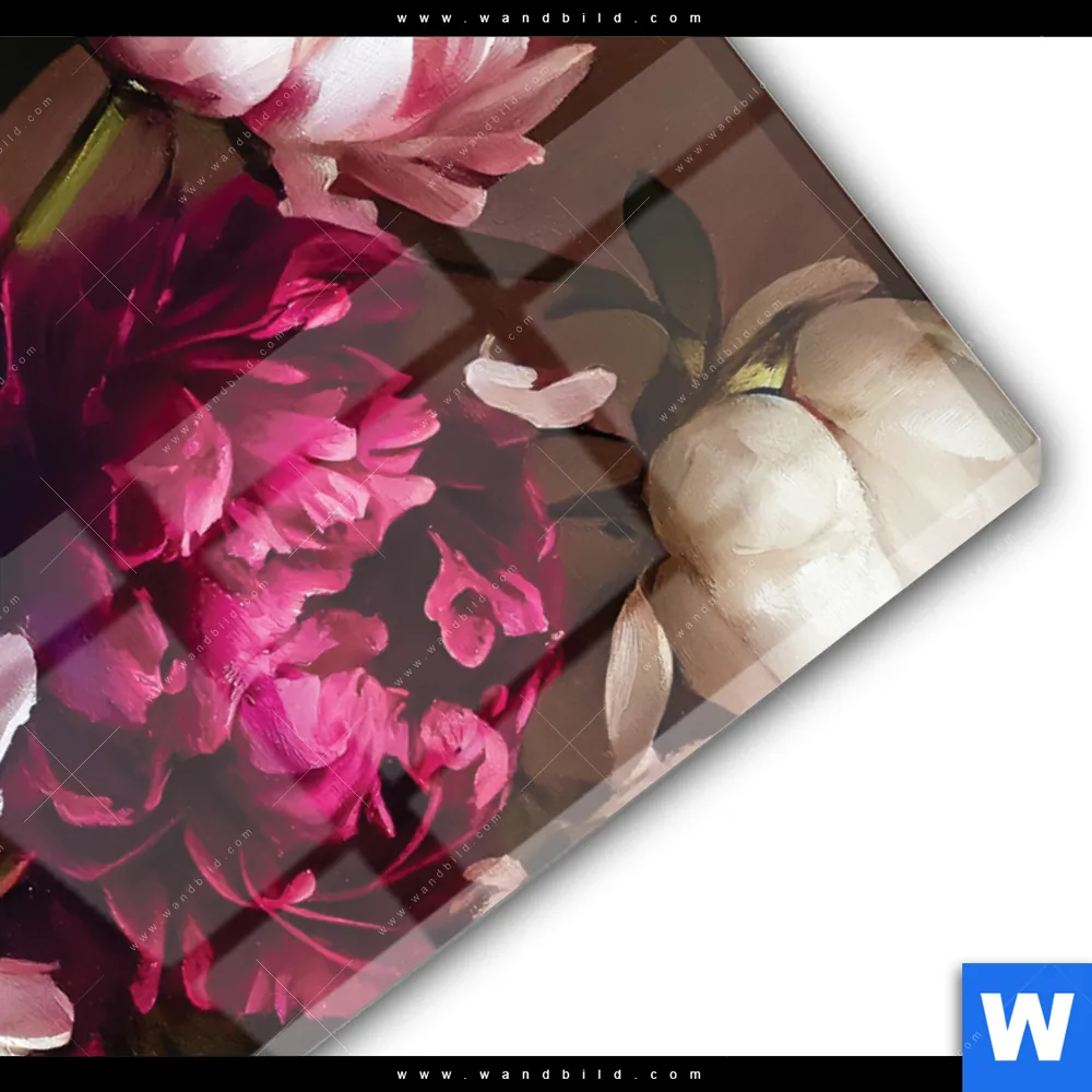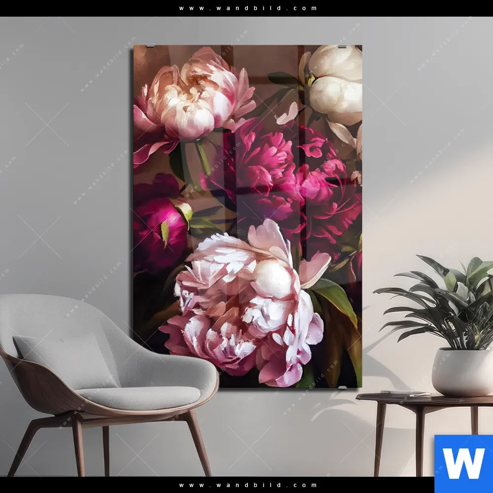 Acrylglasbild | Pfingstrosen im Barockstil | Hochformat