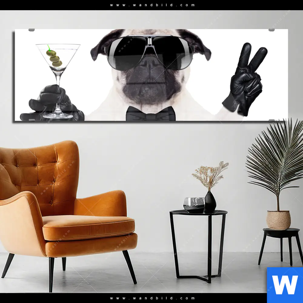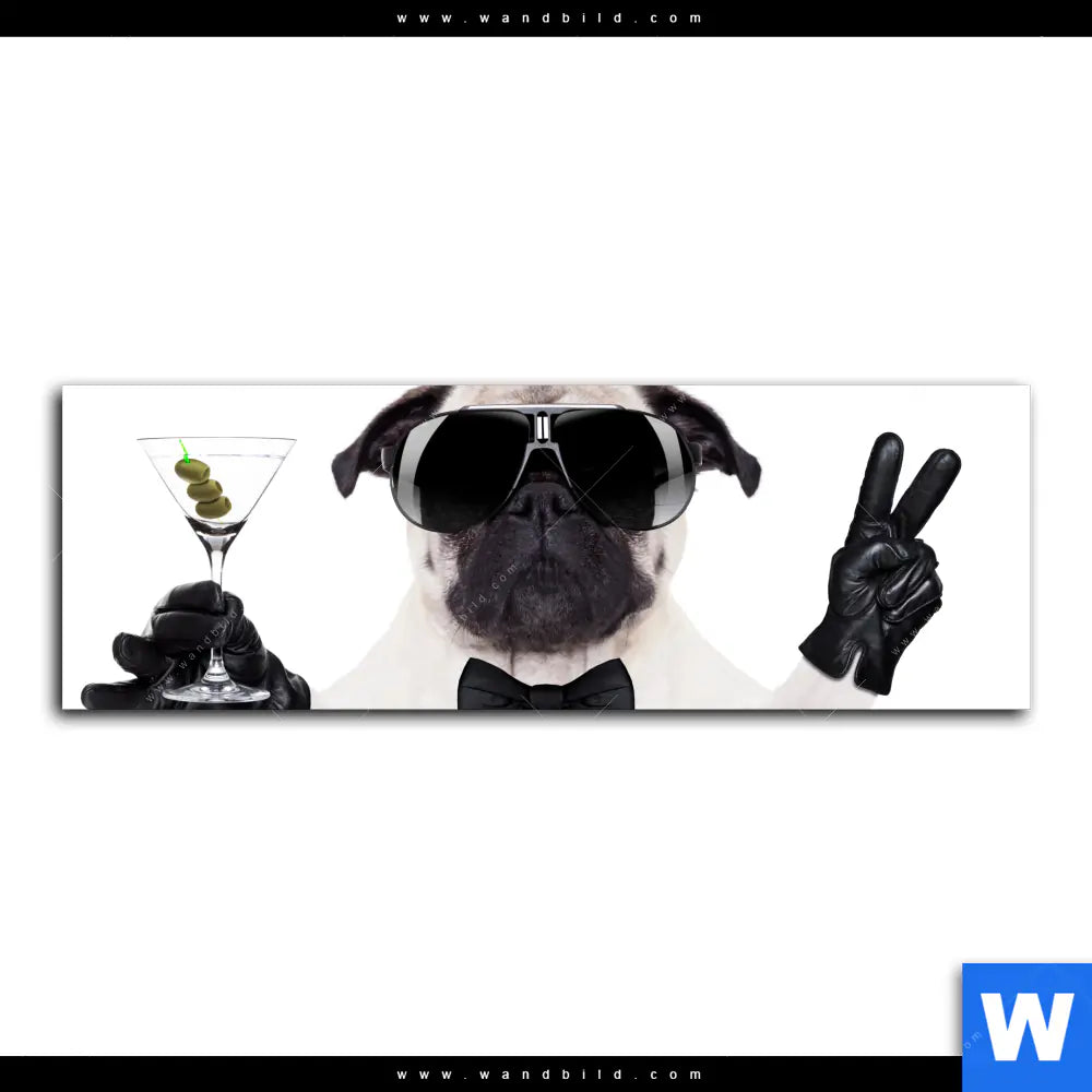 Acrylglasbild | Cooler Mops mit Martini | Panorama
