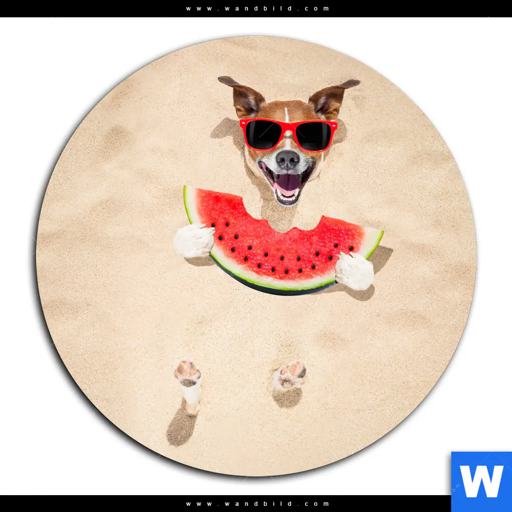 Acrylglasbild | Lustiger Hund am Strand | Rund