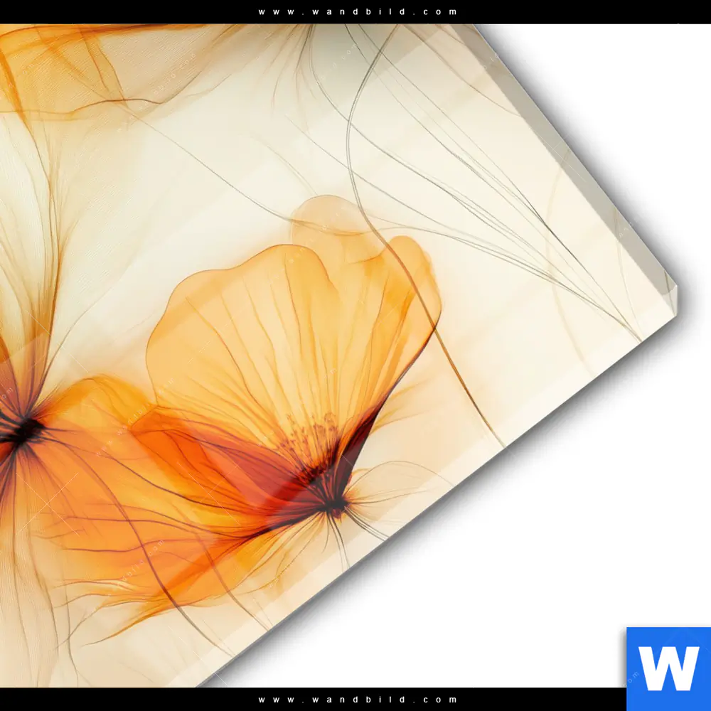 Acrylglasbild | Zarte Blüten in Orange | Quadrat