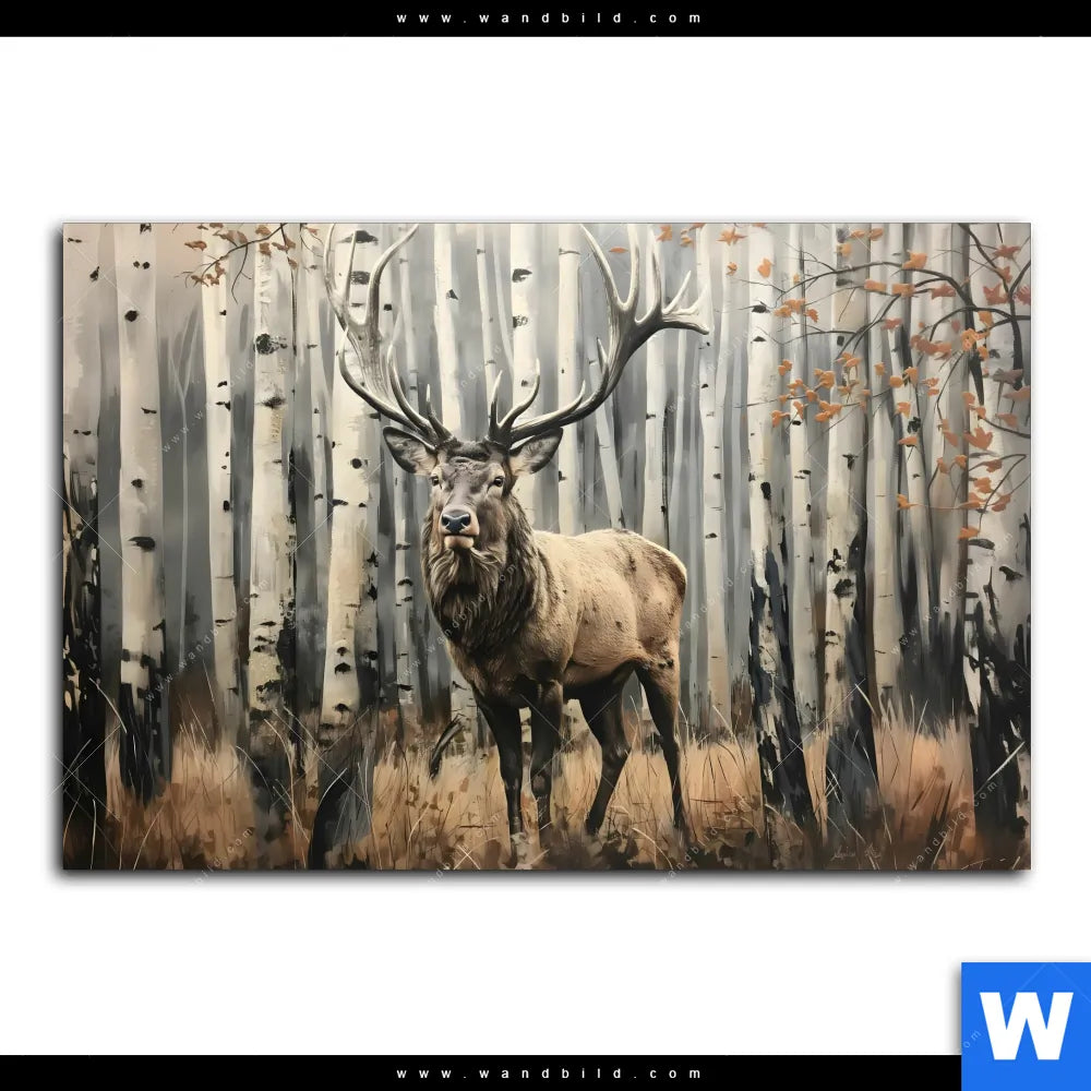 Acrylglasbild | Hirsch im Birkenwald | Querformat