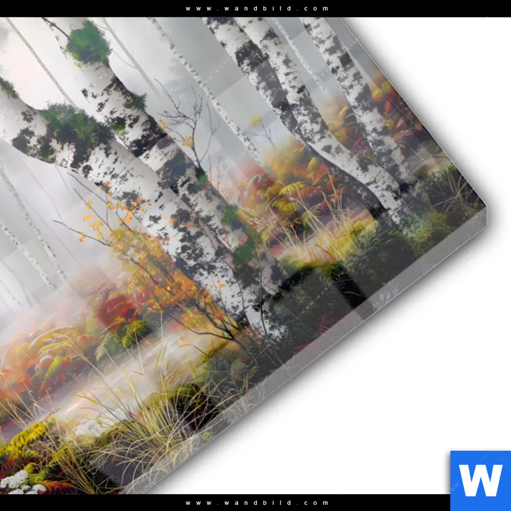 Acrylglasbild | Naturidylle - Birken im Nebel | Querformat