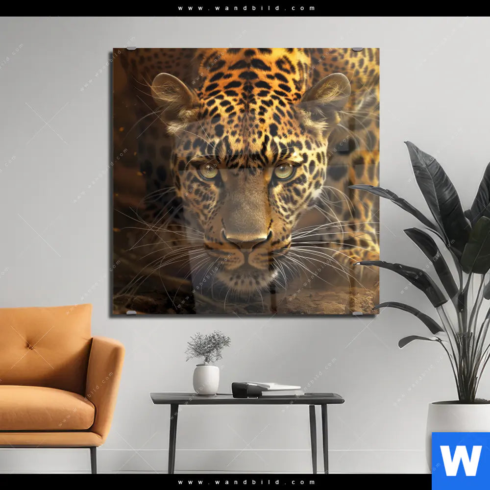 Acrylglasbild | Geheimnisvoller Leopard | Quadrat