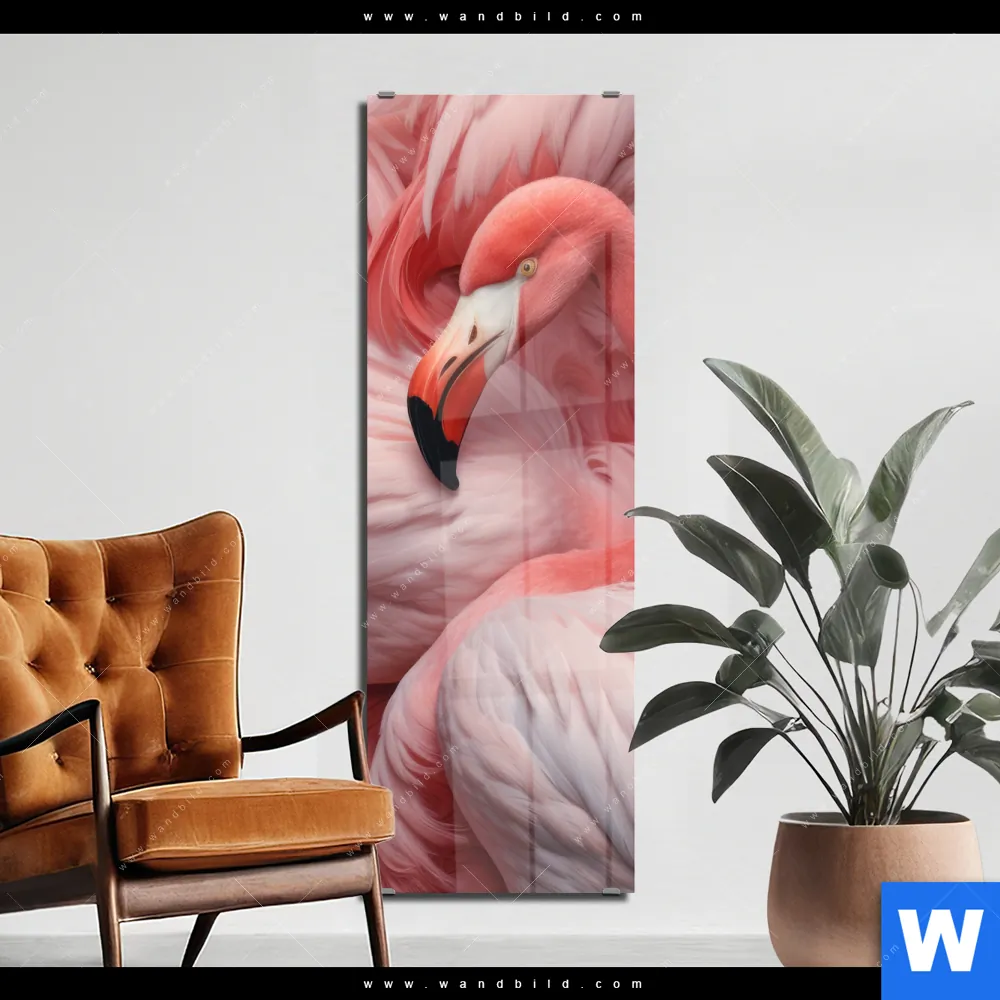 Acrylglasbild | Kuschelnde Flamingos | Schmal
