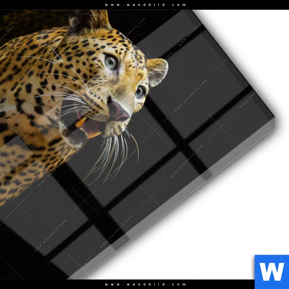 Acrylglasbild | Leopard in der Dunkelheit | Hochformat