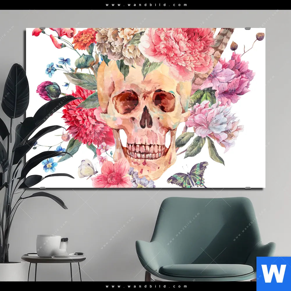 Acrylglasbild | Schädel im Boho Stil | Querformat