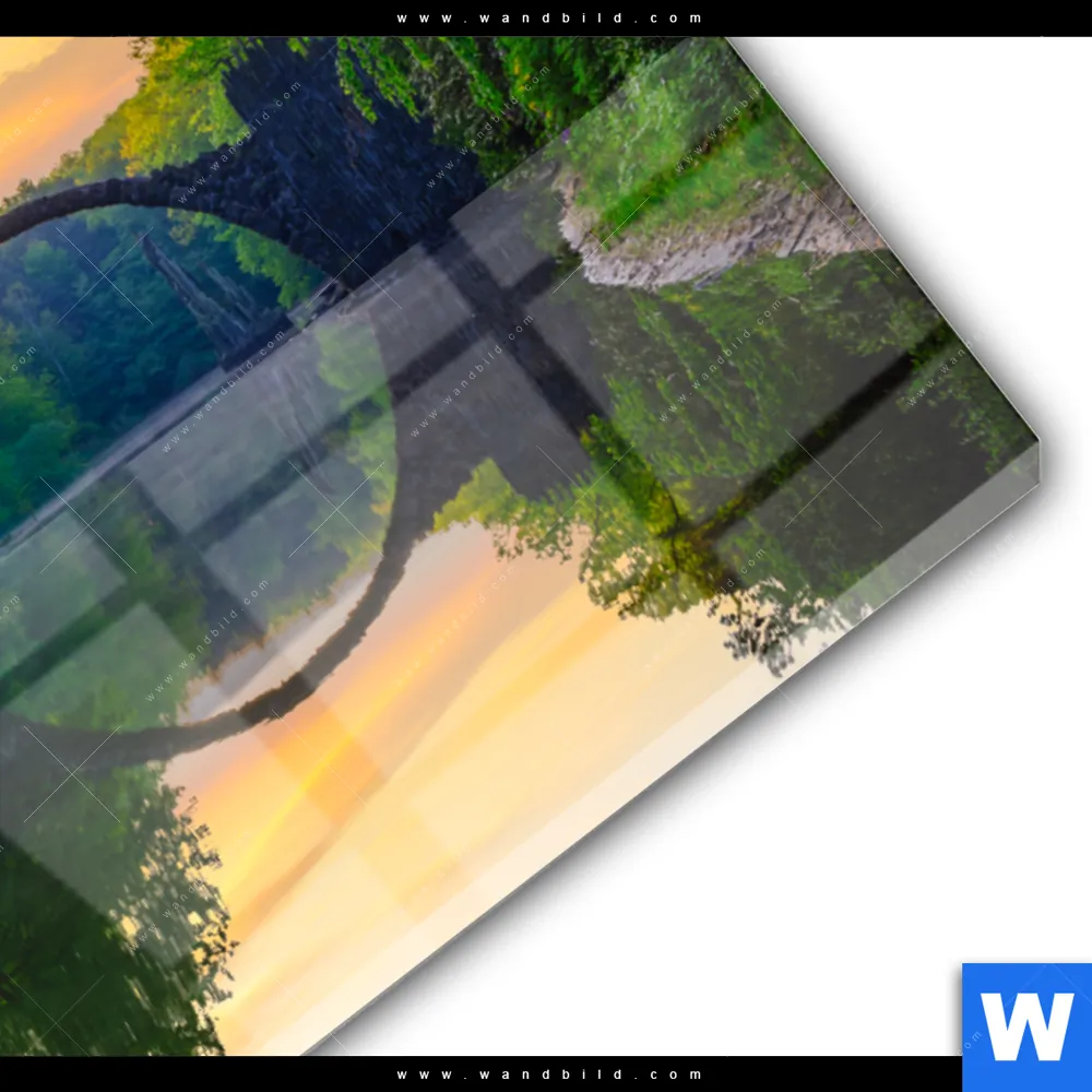 Acrylglasbild | See mit alter Brücke aus Stein | Querformat