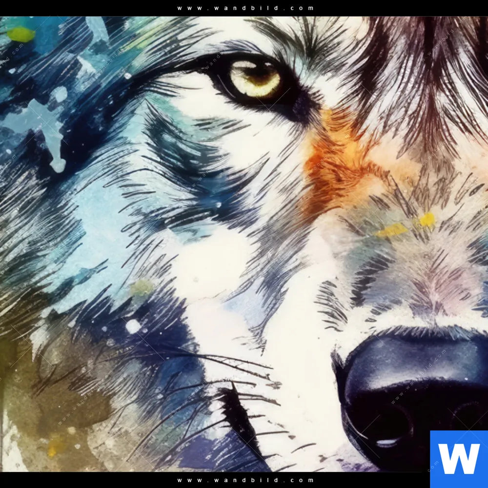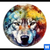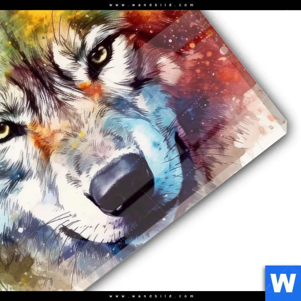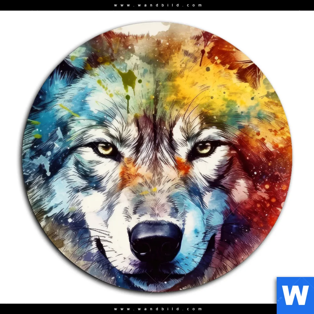 Acrylglasbild | Wolf mit bunten Farbspritzern No. 2 | Rund