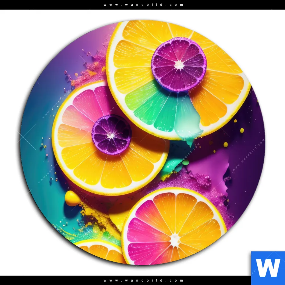Acrylglasbild | Zitronen Neon Farbe | Rund