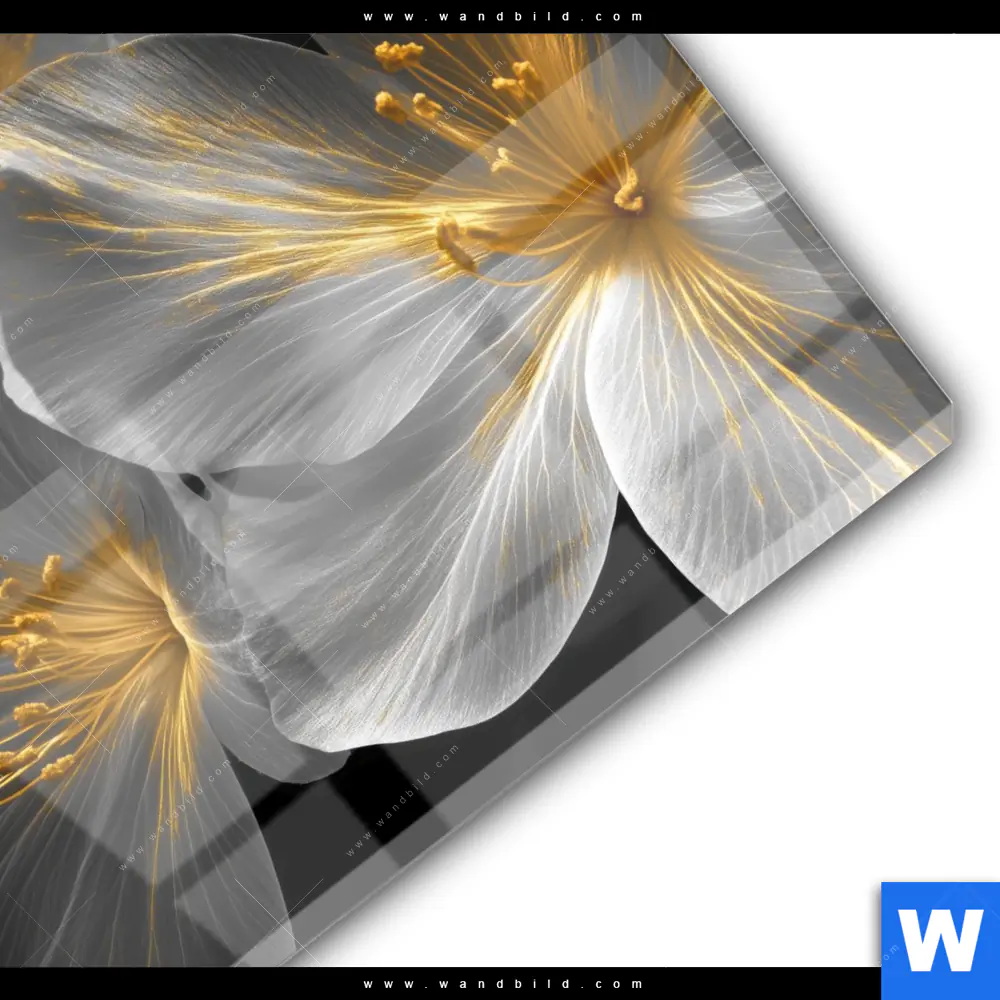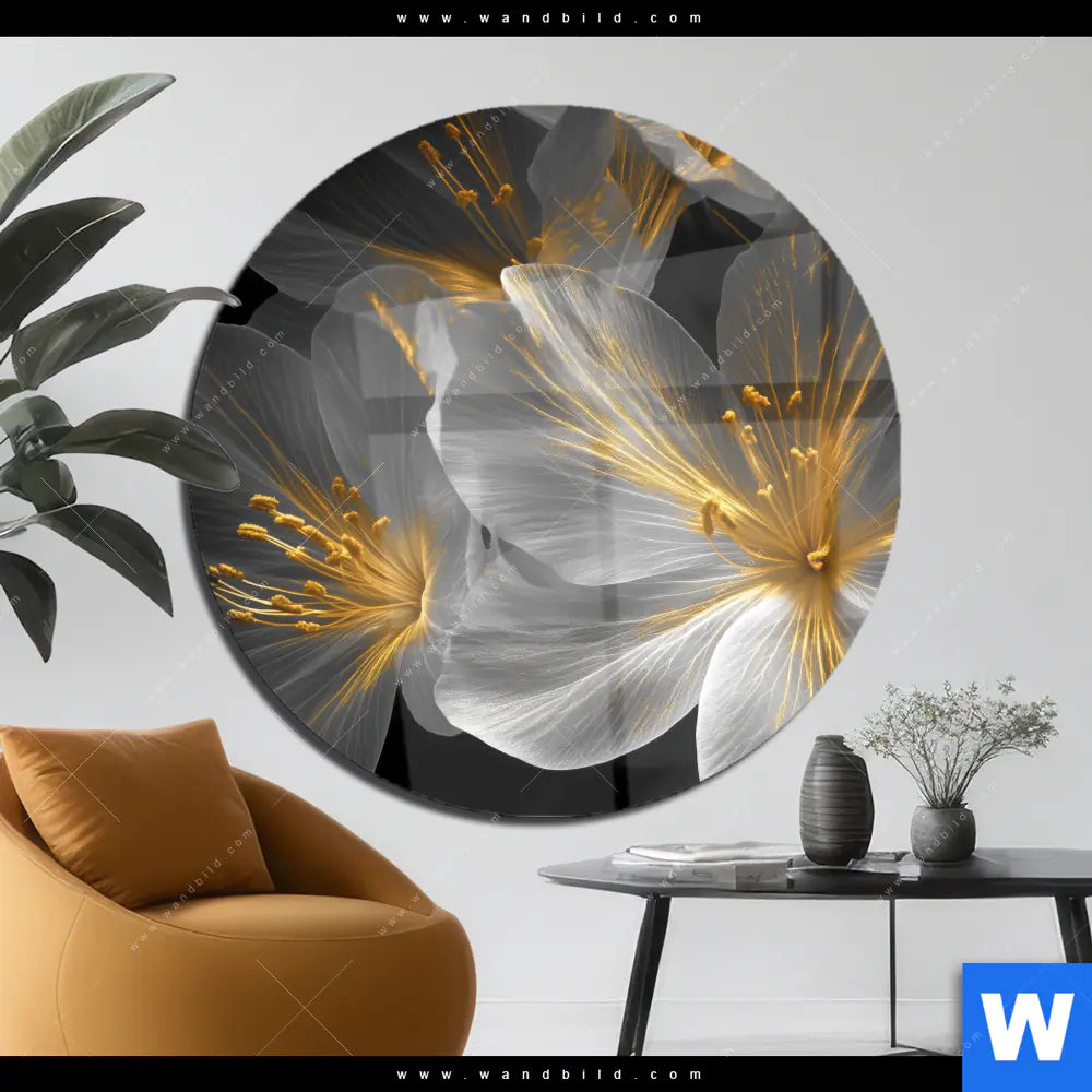 Acrylglasbild | Blüten Gold & Weiß | Rund