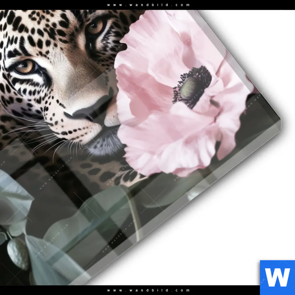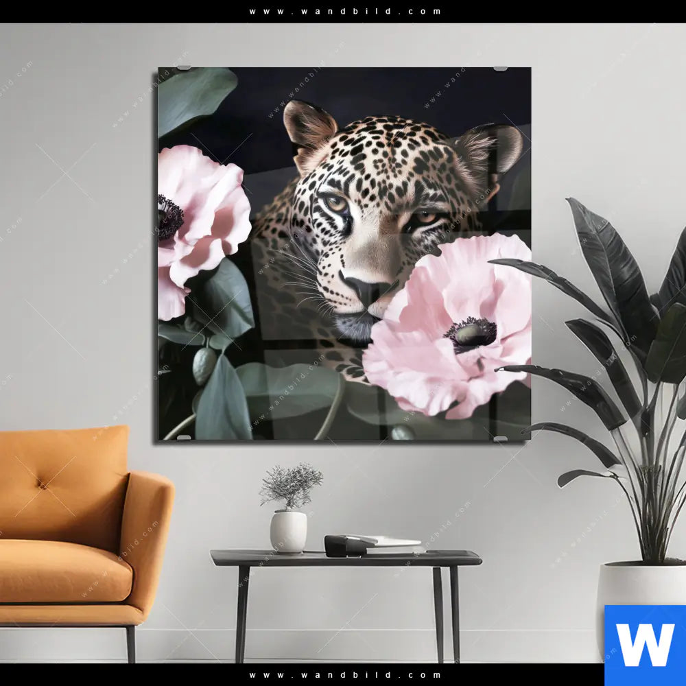 Acrylglasbild | Blumen und Raubkatzenmagie | Quadrat