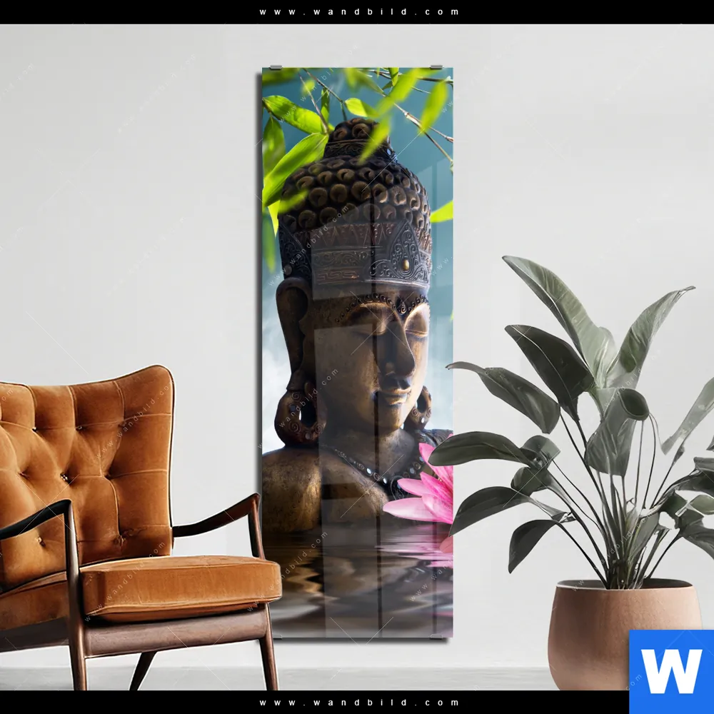Acrylglasbild | Buddha Statue mit Seerose | Schmal