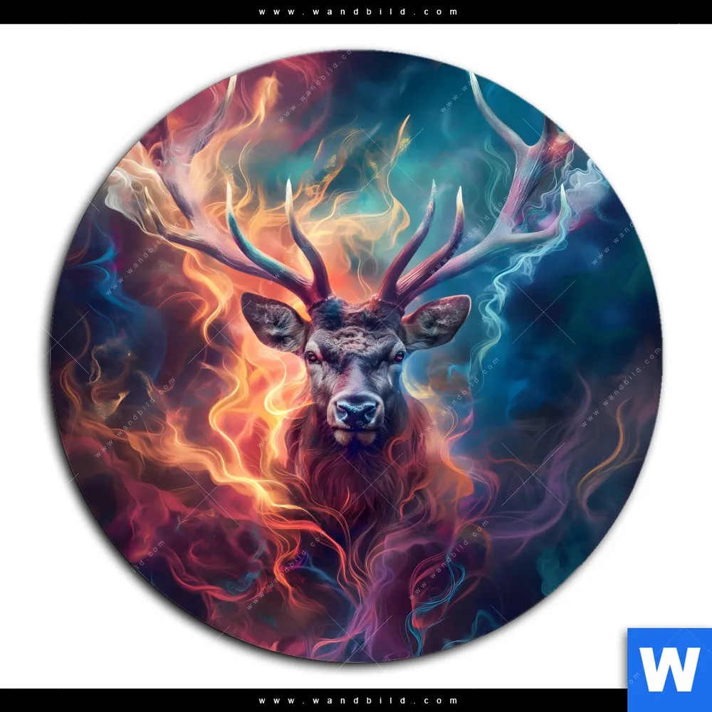Acrylglasbild | Bunter Hirsch in Flammen | Rund