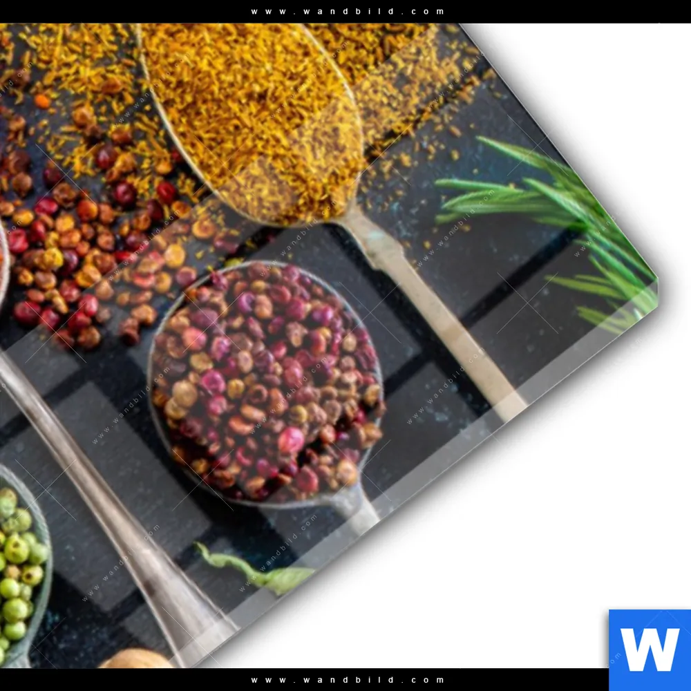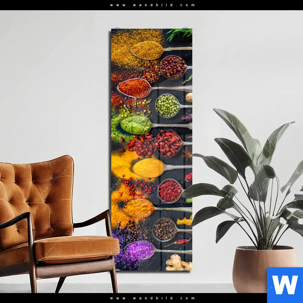 Acrylglasbild | Exotische Gewürze auf Löffeln | Schmal