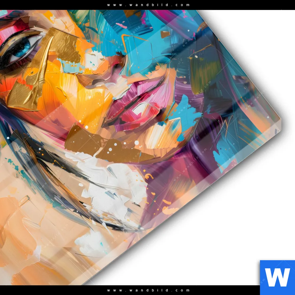 Acrylglasbild | Farbexplosion - Porträt Lola | Quadrat
