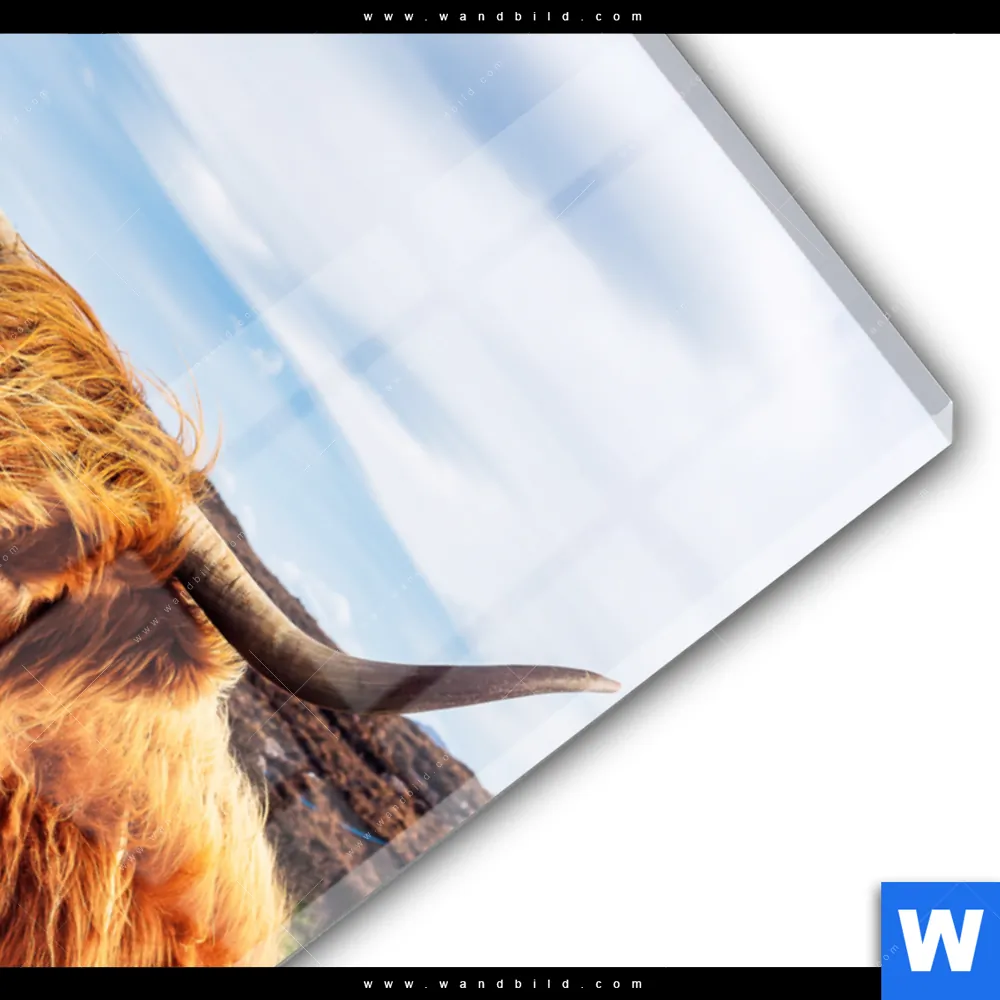 Acrylglasbild | Grasendes Hochlandrind | Hochformat