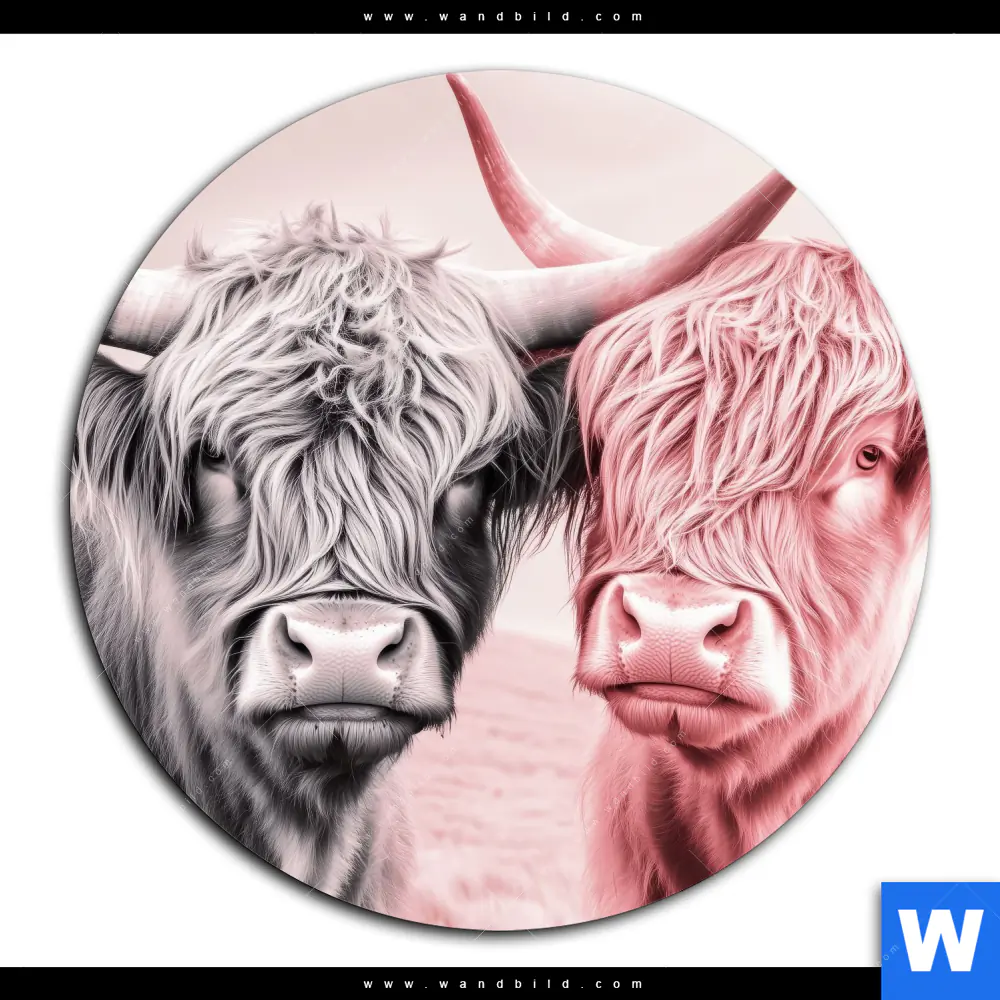 Acrylglasbild | Hochlandrinder - Harmonie in Pastell | Rund