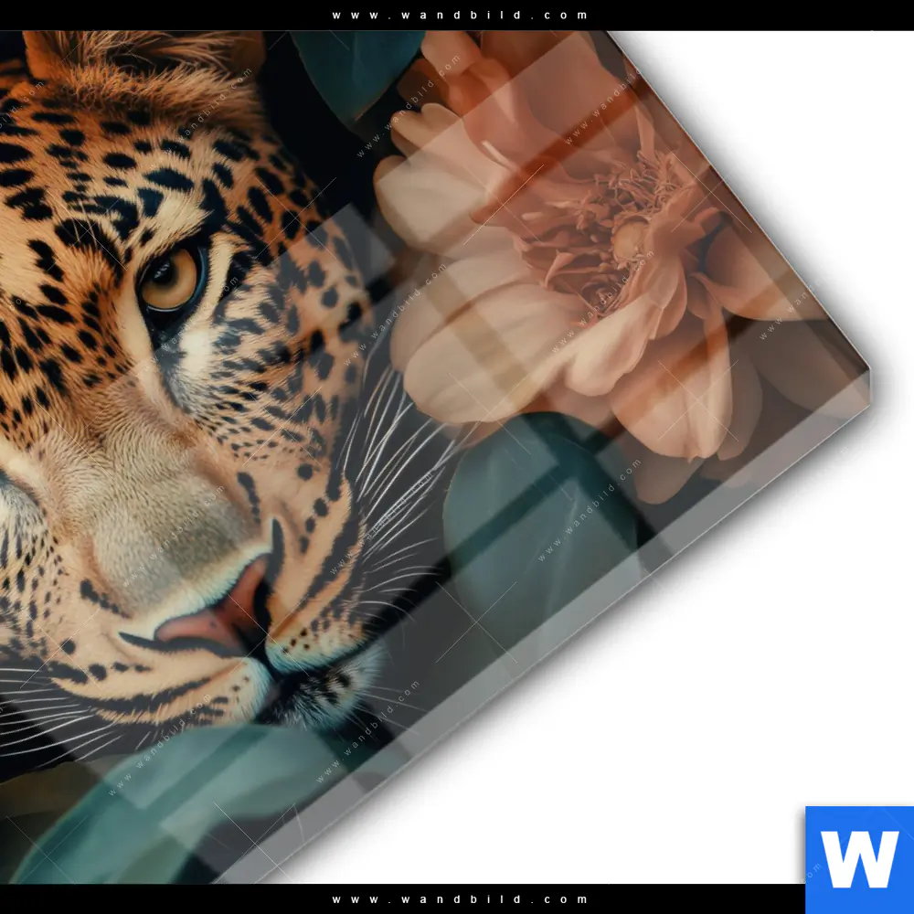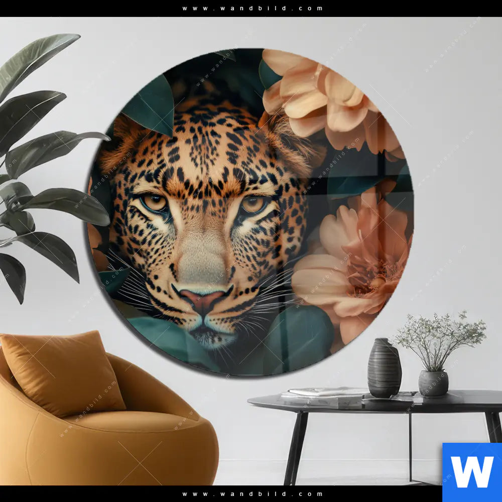 Acrylglasbild | Leopard im Blütenmeer | Rund