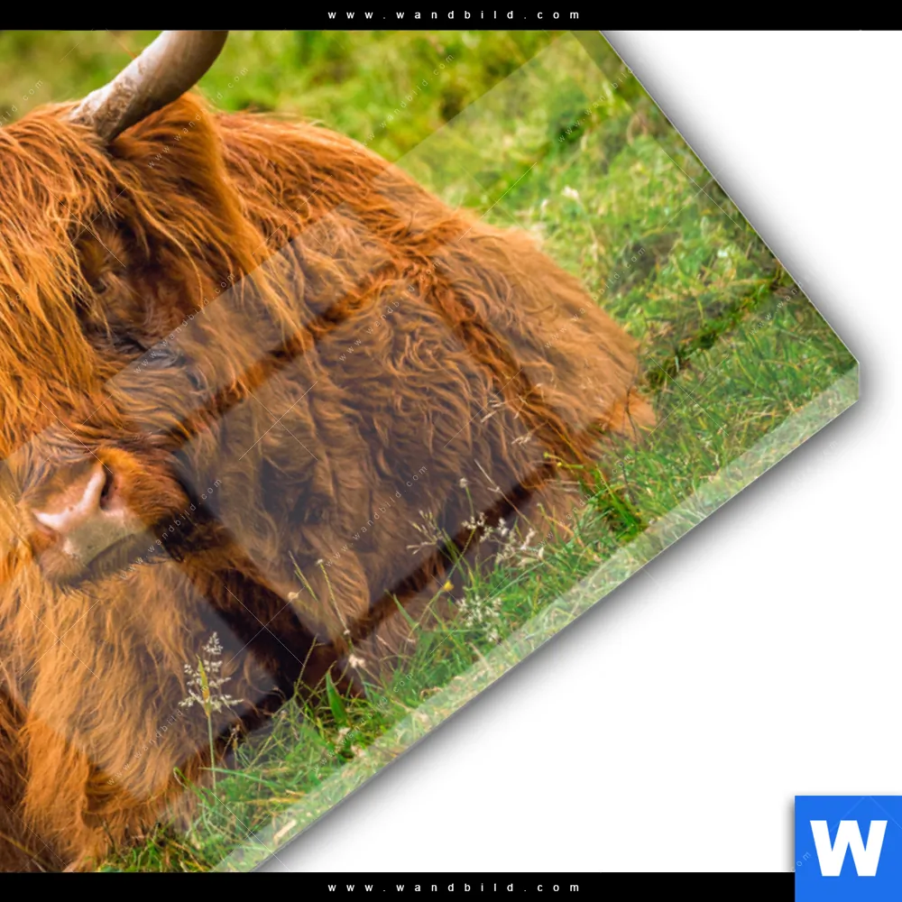 Acrylglasbild | Rind in den schottischen Highlands | Querformat