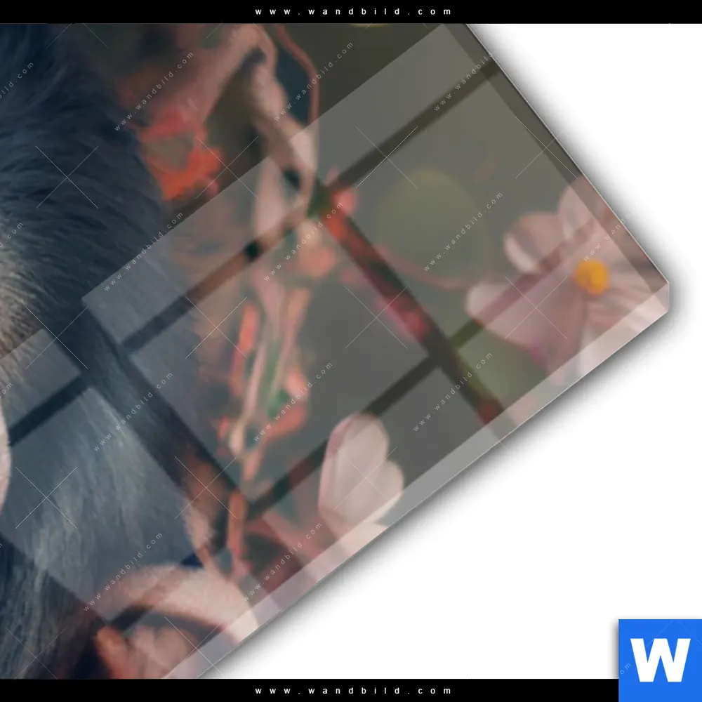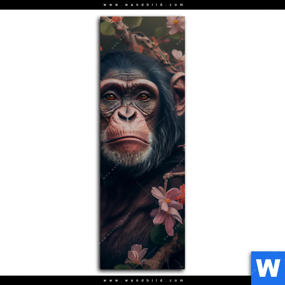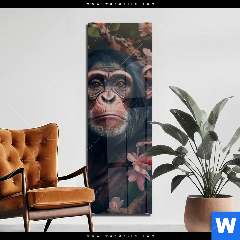 Acrylglasbild | Schimpanse zwischen Blumen | Schmal