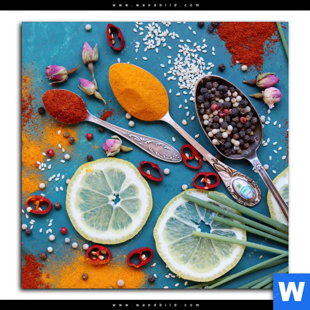 Acrylglasbild | Vintage Silberlöffel mit Gewürzen | Quadrat
