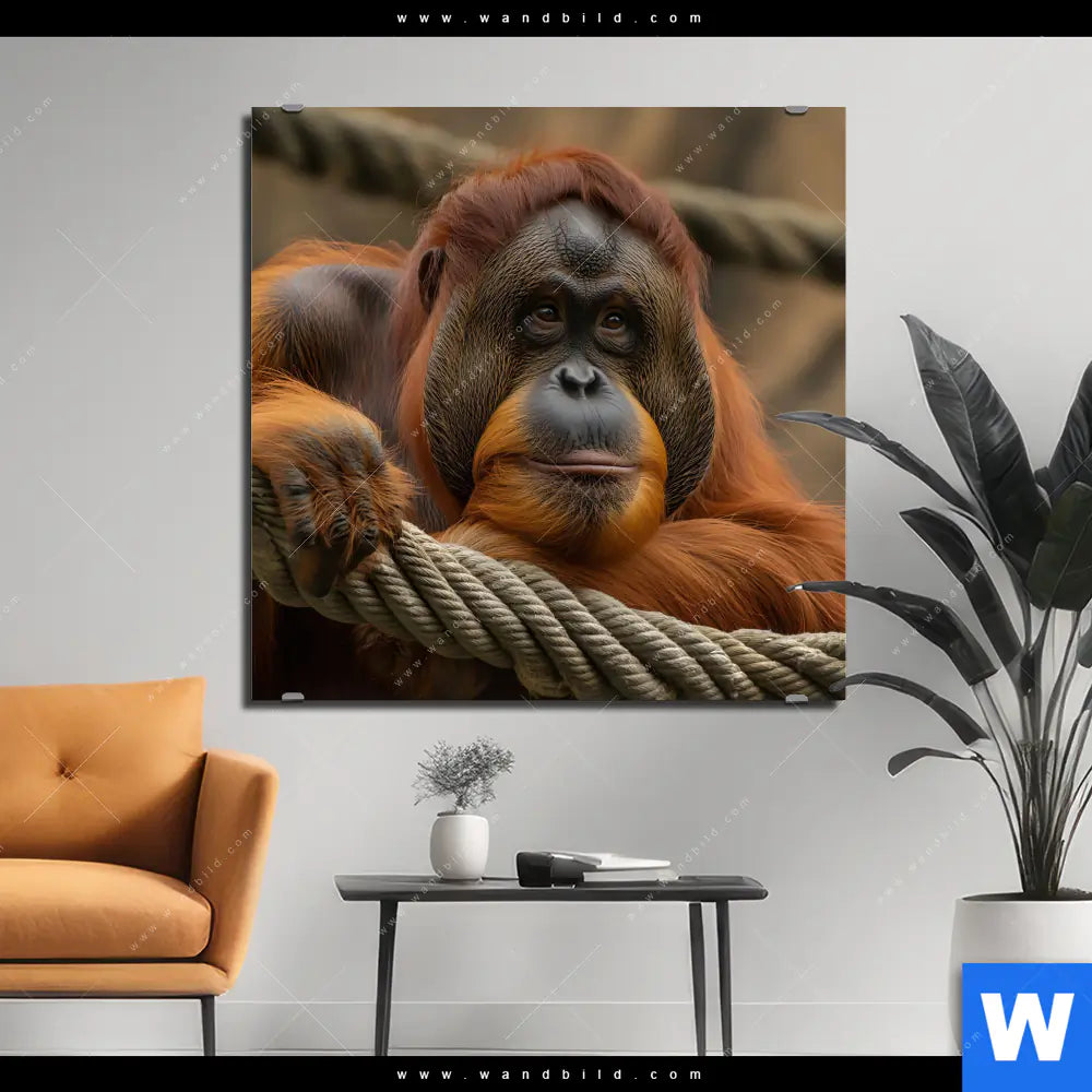Alu-Dibond Bild | Orang-Utan mit sanftem Blick | Quadrat