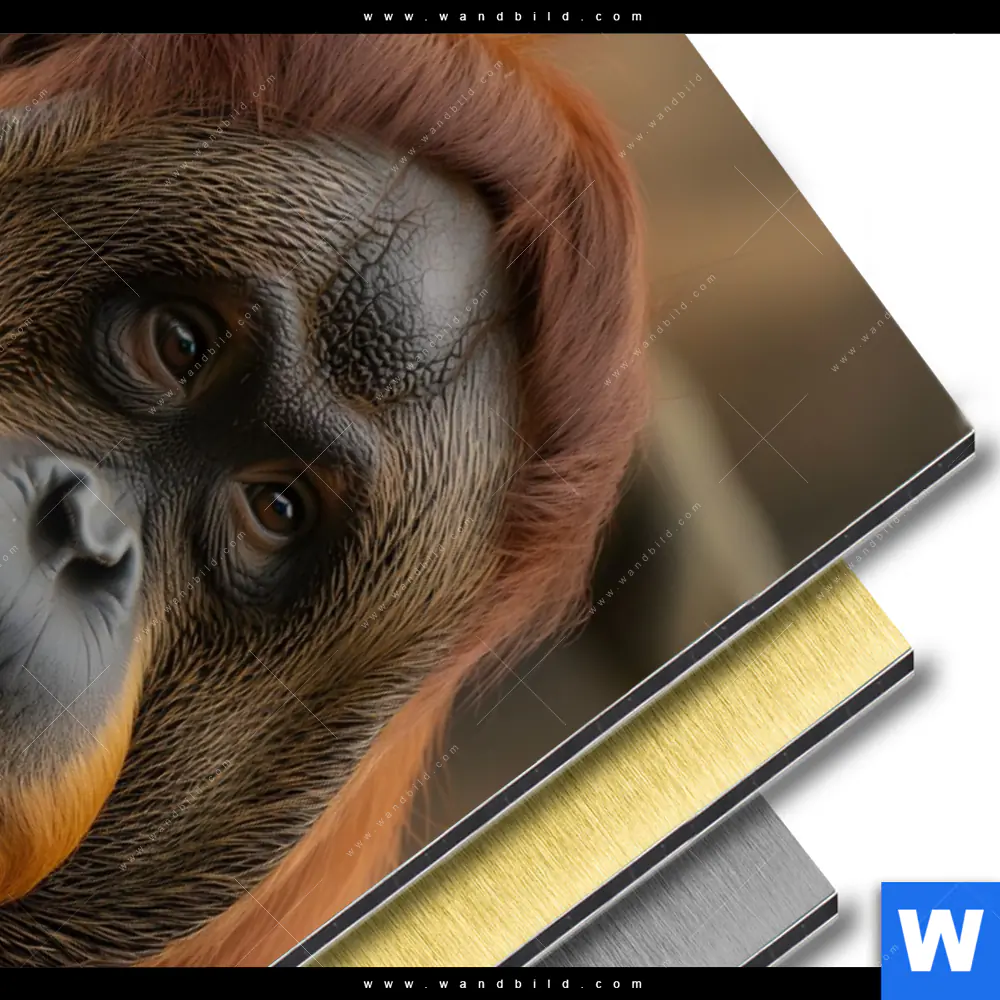Aluminiumbild gebürstet | Orang-Utan mit sanftem Blick | Hochformat