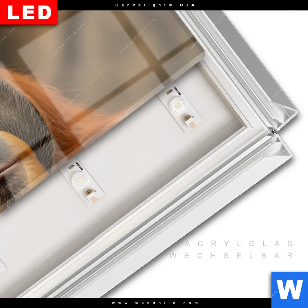 LED-Glasbild mit austauschbarem Acrylglas-Druck (Wechselbild)