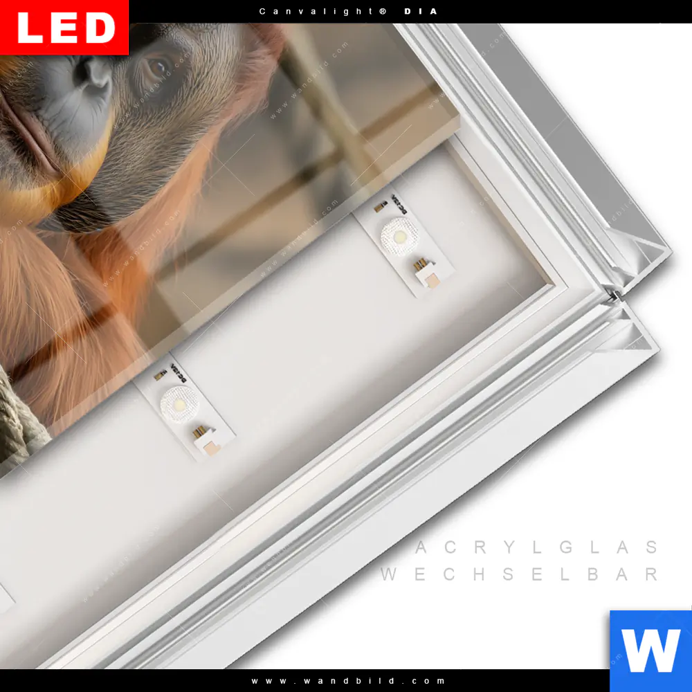 Canvalight® DIA Leuchtbild | Orang-Utan mit sanftem Blick | Quadrat
