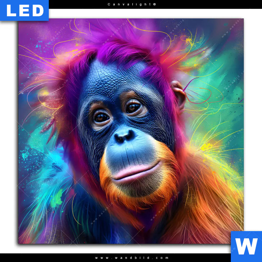 Canvalight® Leuchtbild | Orang-Utan in Regenbogenfarben | Quadrat