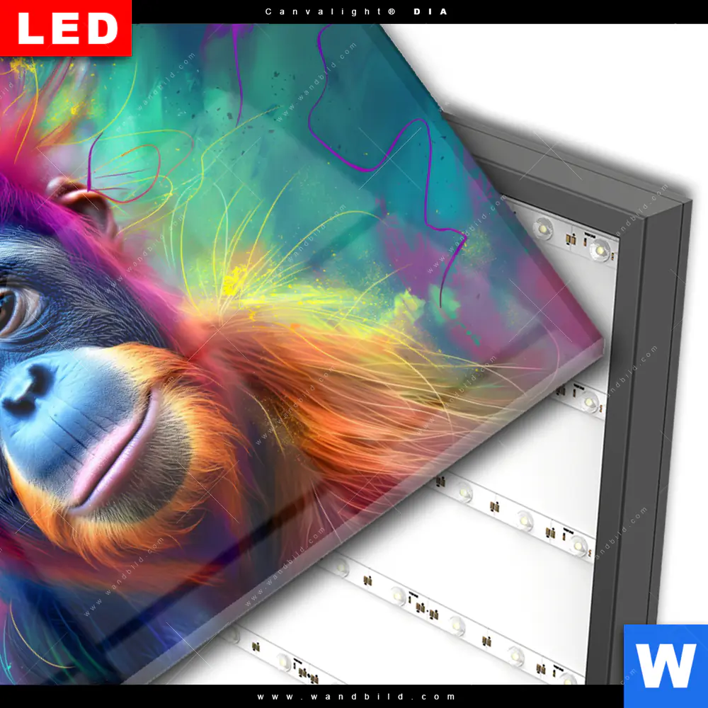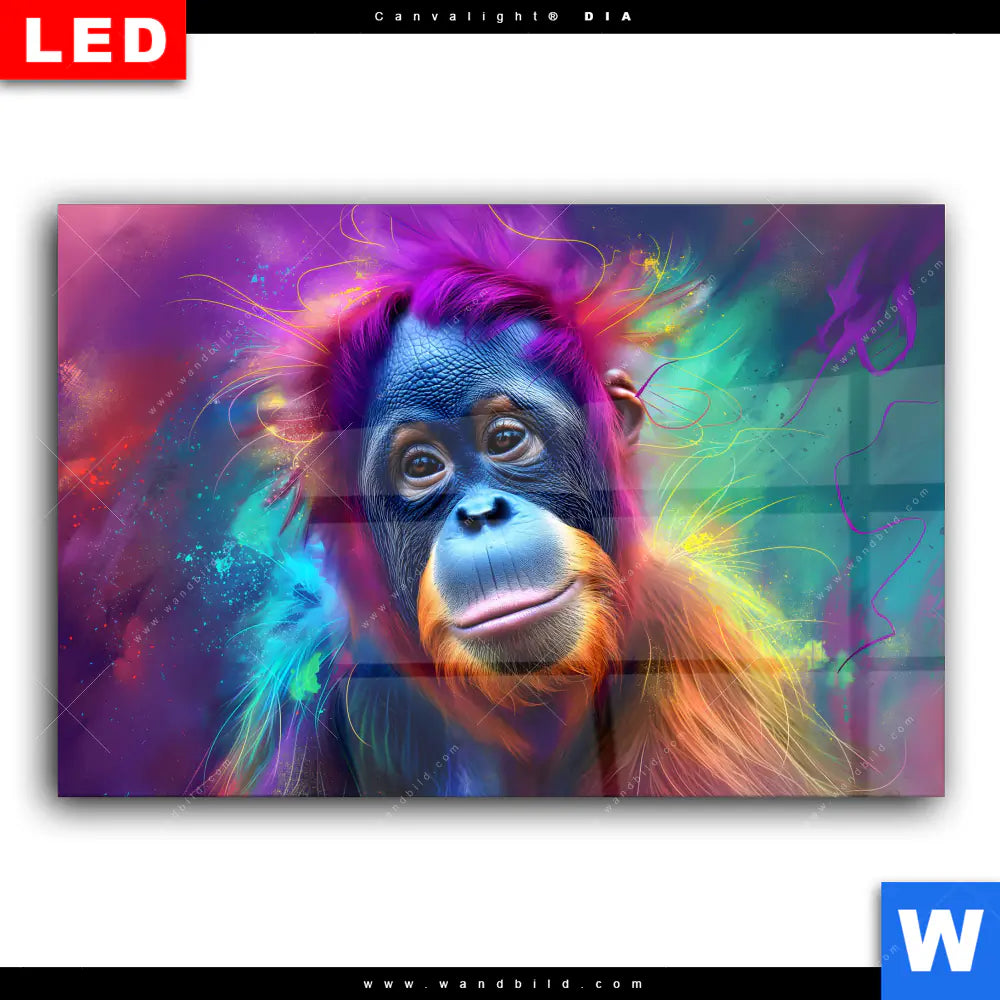 Wechselmotiv Acrylglas Canvalight® DIA | Orang-Utan in Regenbogenfarben | Querformat