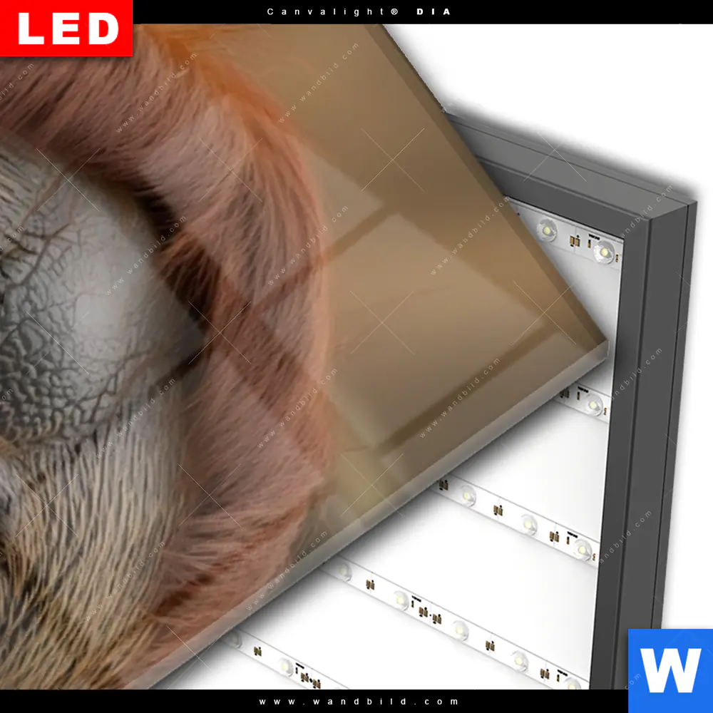 Wechselmotiv Acrylglas Canvalight® DIA | Orang-Utan mit sanftem Blick | Schmal