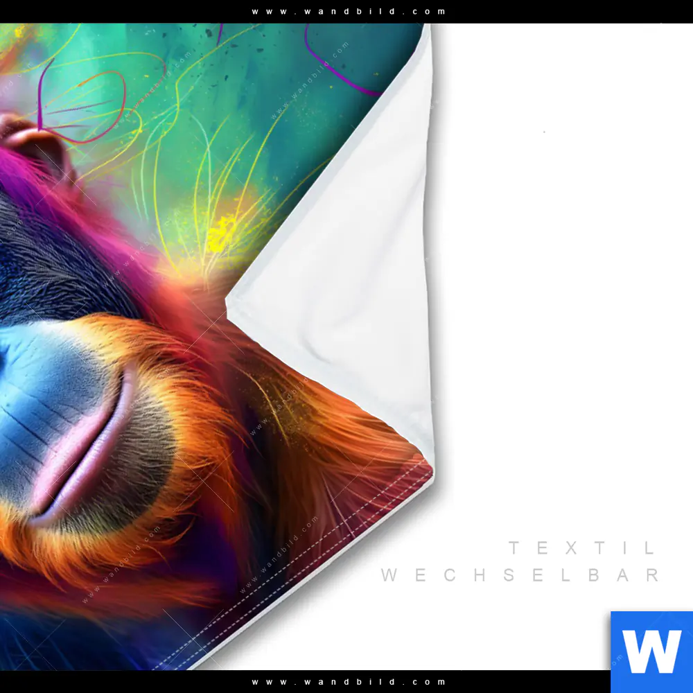 Wechselmotiv Textil | Orang-Utan in Regenbogenfarben | Querformat