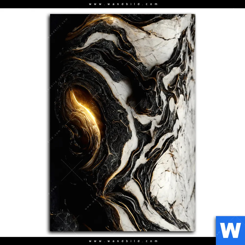 Alu-Dibond Bild | Liquid Marmor Schwarz Gold | Hochformat