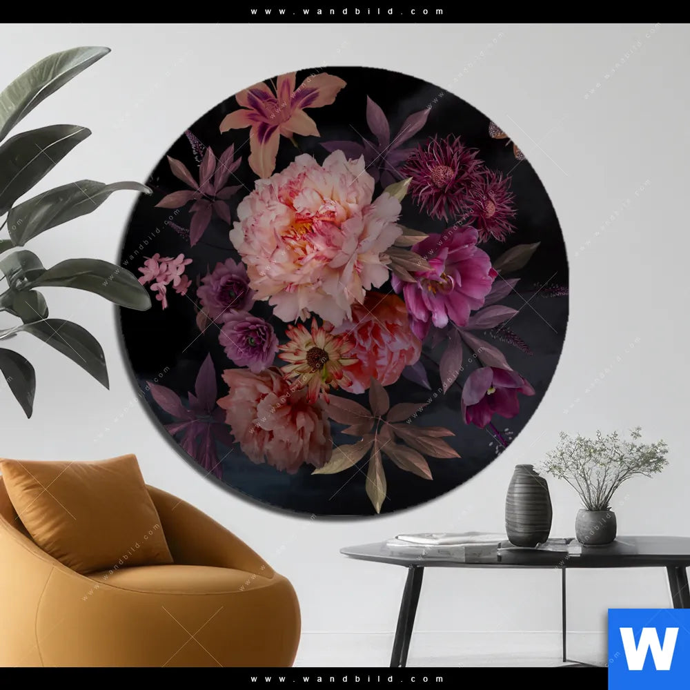 Alu-Dibond Bild | Romantische Blumenillustration | Rund