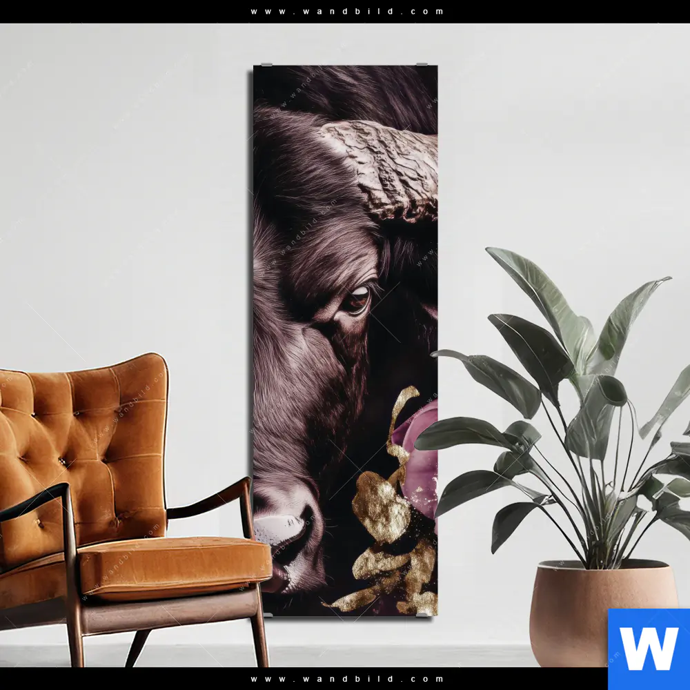 Alu-Dibond Bild | Stier mit Blumen | Schmal