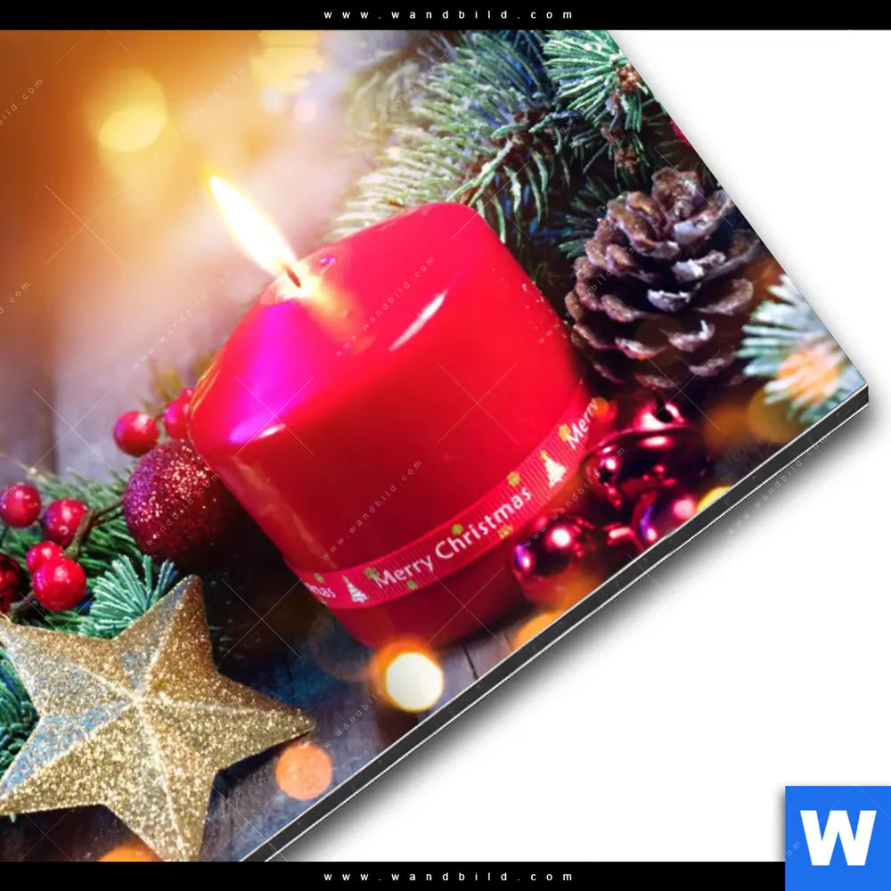 Alu-Dibond Bild | Adventskerze mit Weihnachtsschmuck | Quadrat