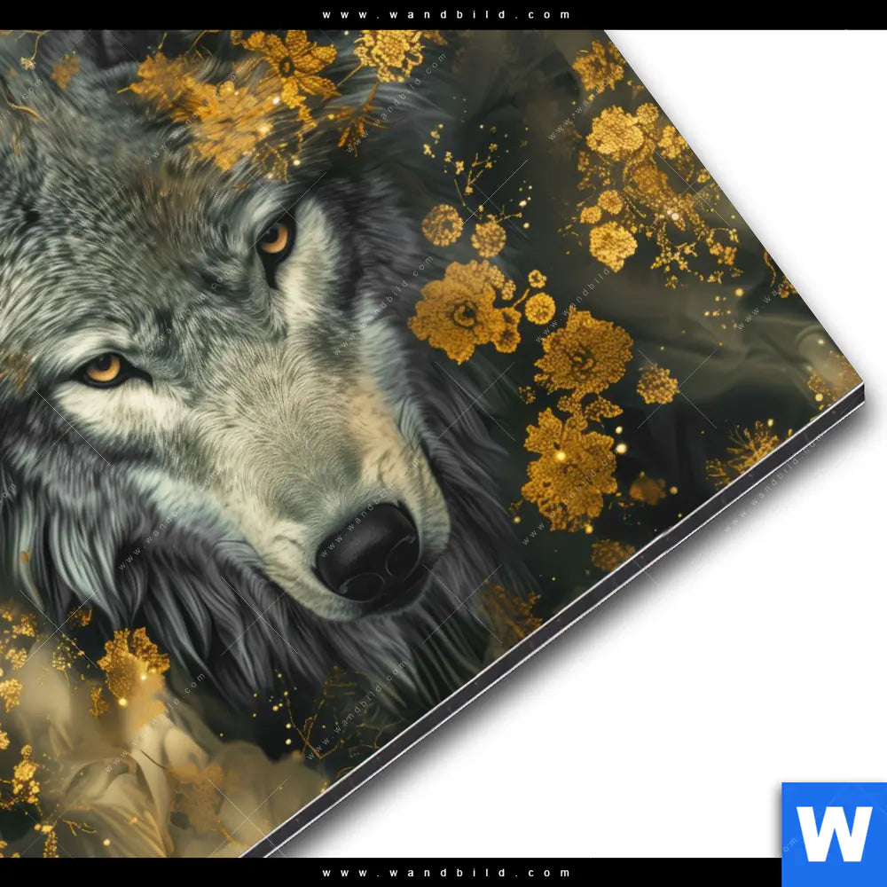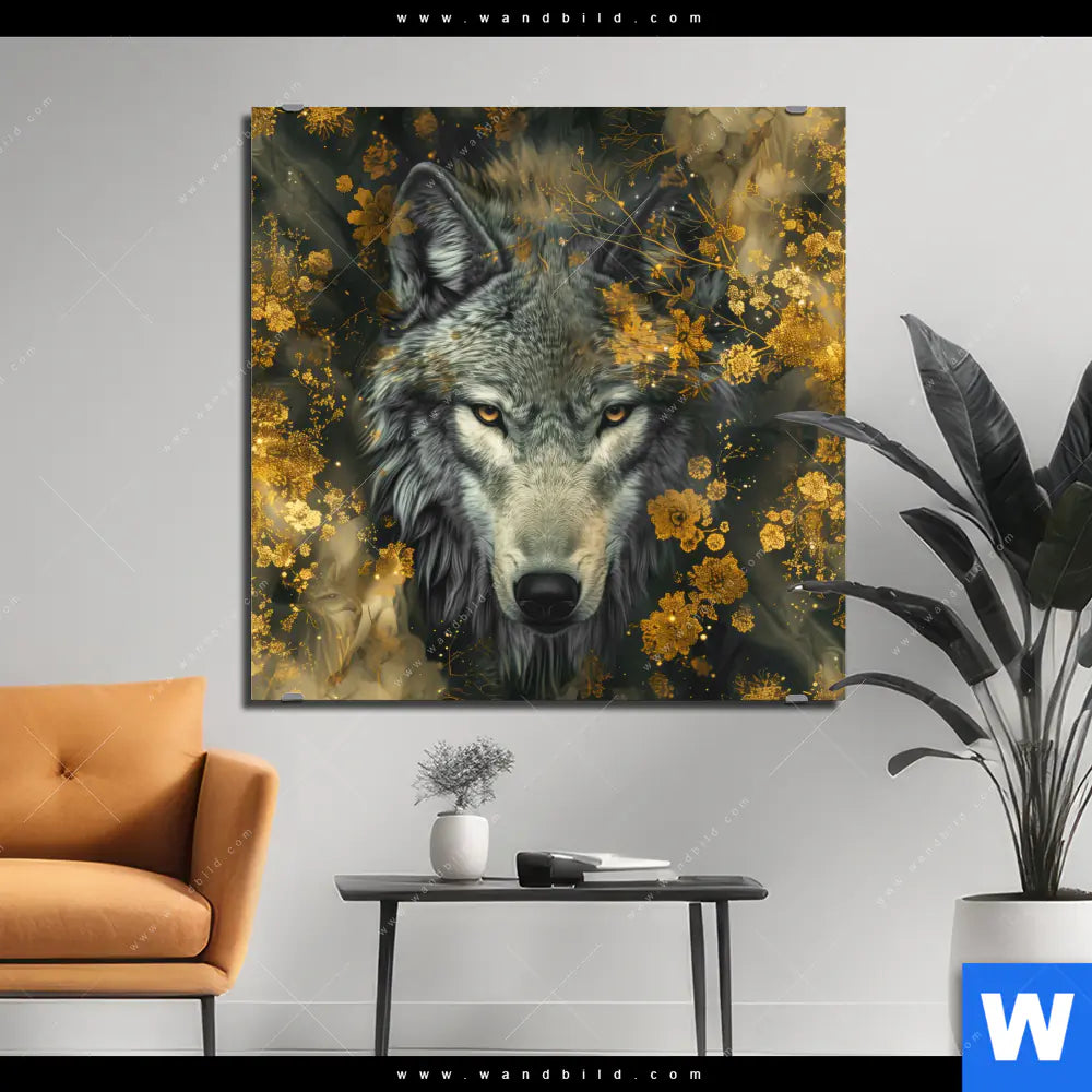 Alu-Dibond Bild | Goldener Wolfblick | Quadrat