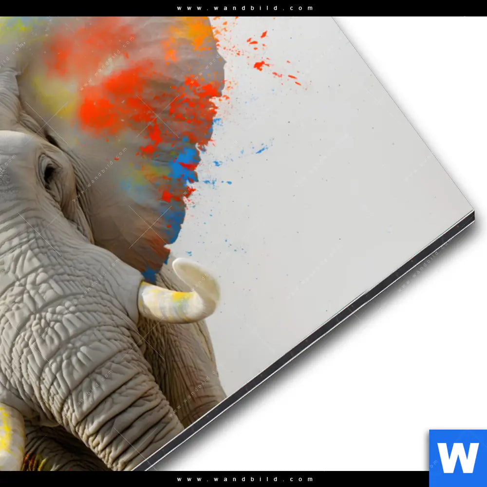 Alu-Dibond Bild | Farbenexplosion mit Elefant | Querformat