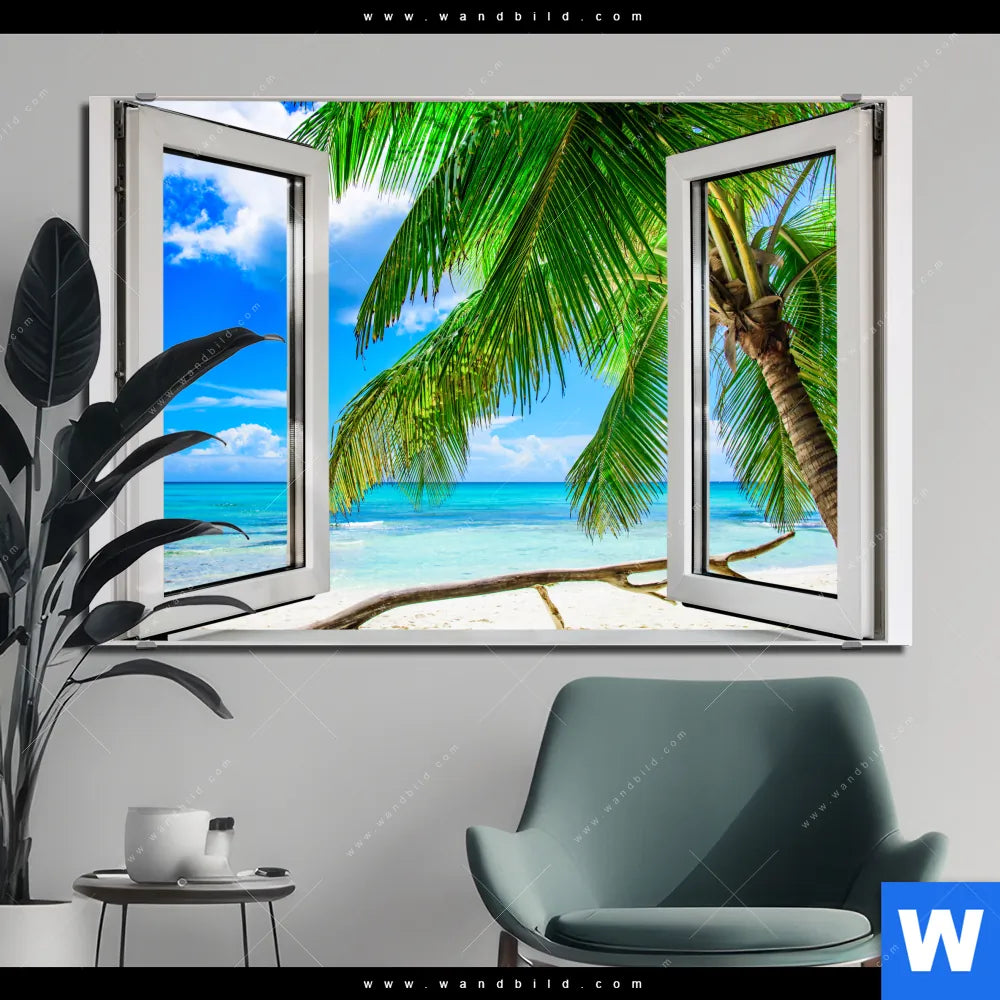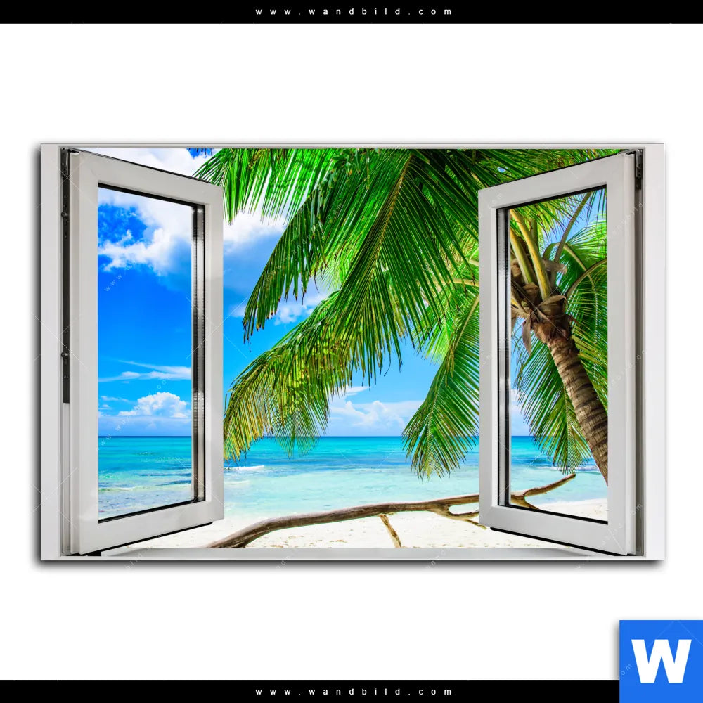 Alu-Dibond Bild | Fensterblick Karibik Palme | Querformat