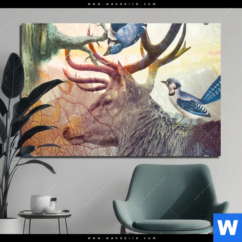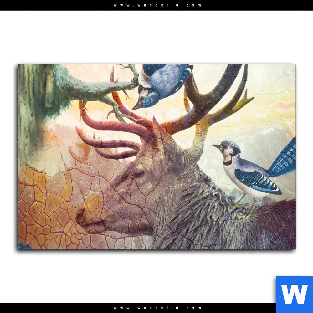 Alu-Dibond Bild | Hirsch & Vögel | Querformat