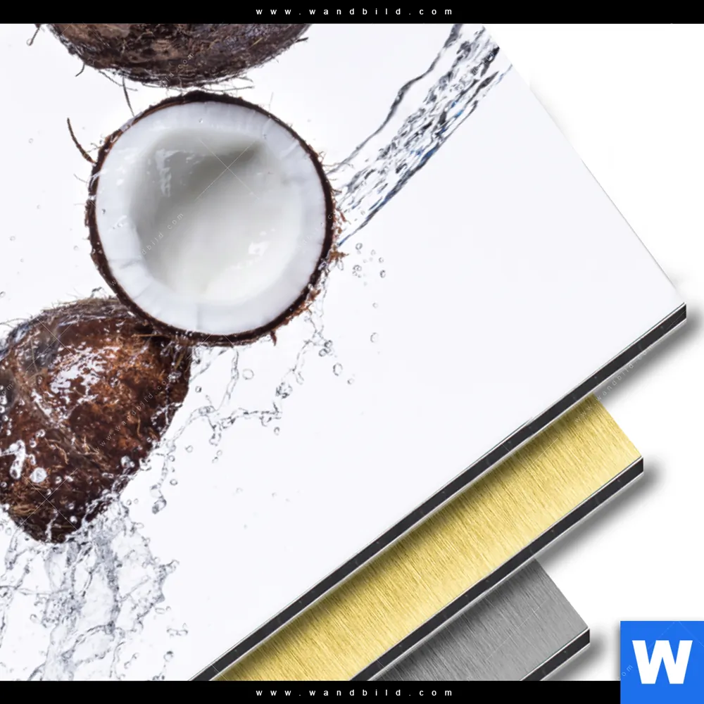 Alu-Dibond Bild | Kokosnüsse mit Wasserspritzer | Querformat