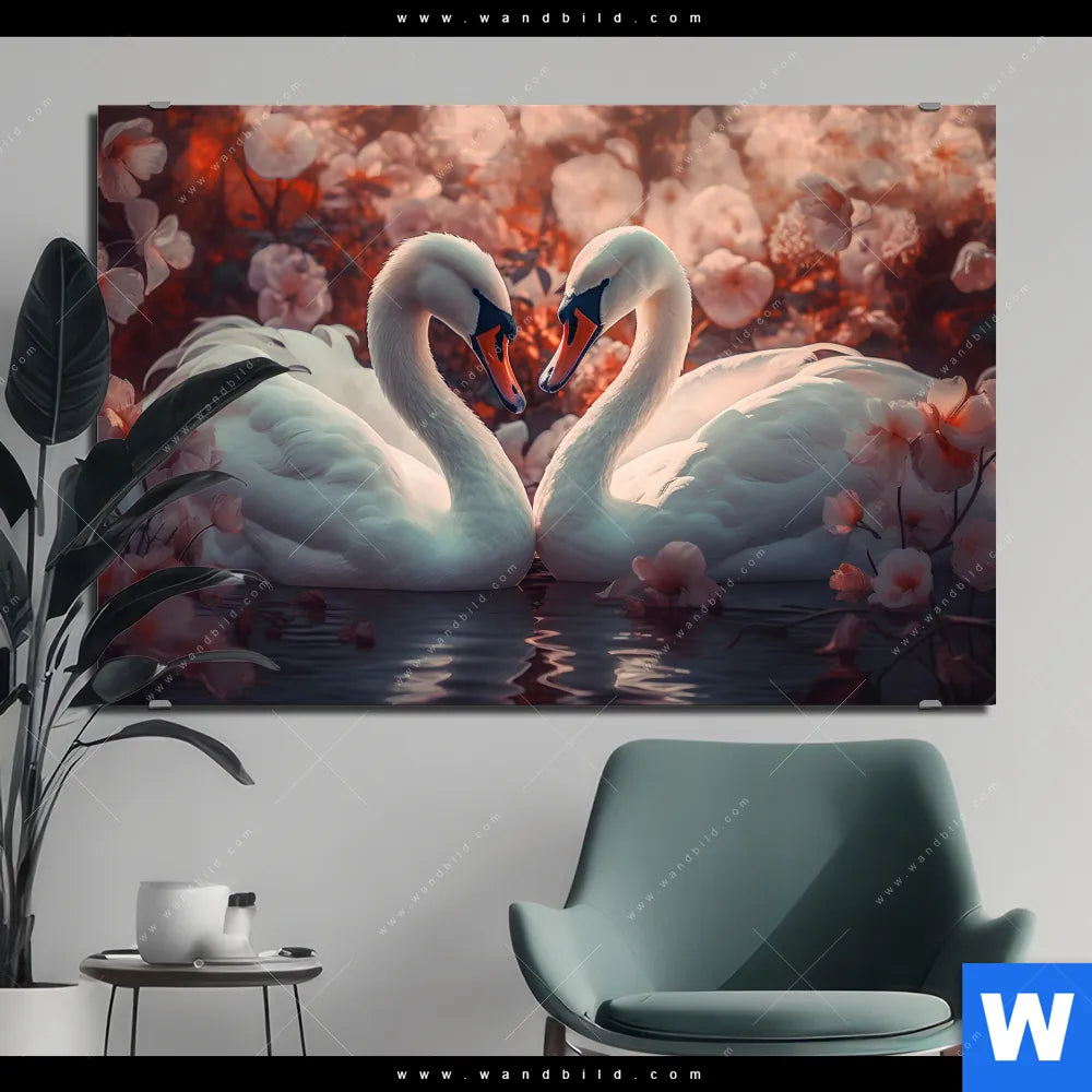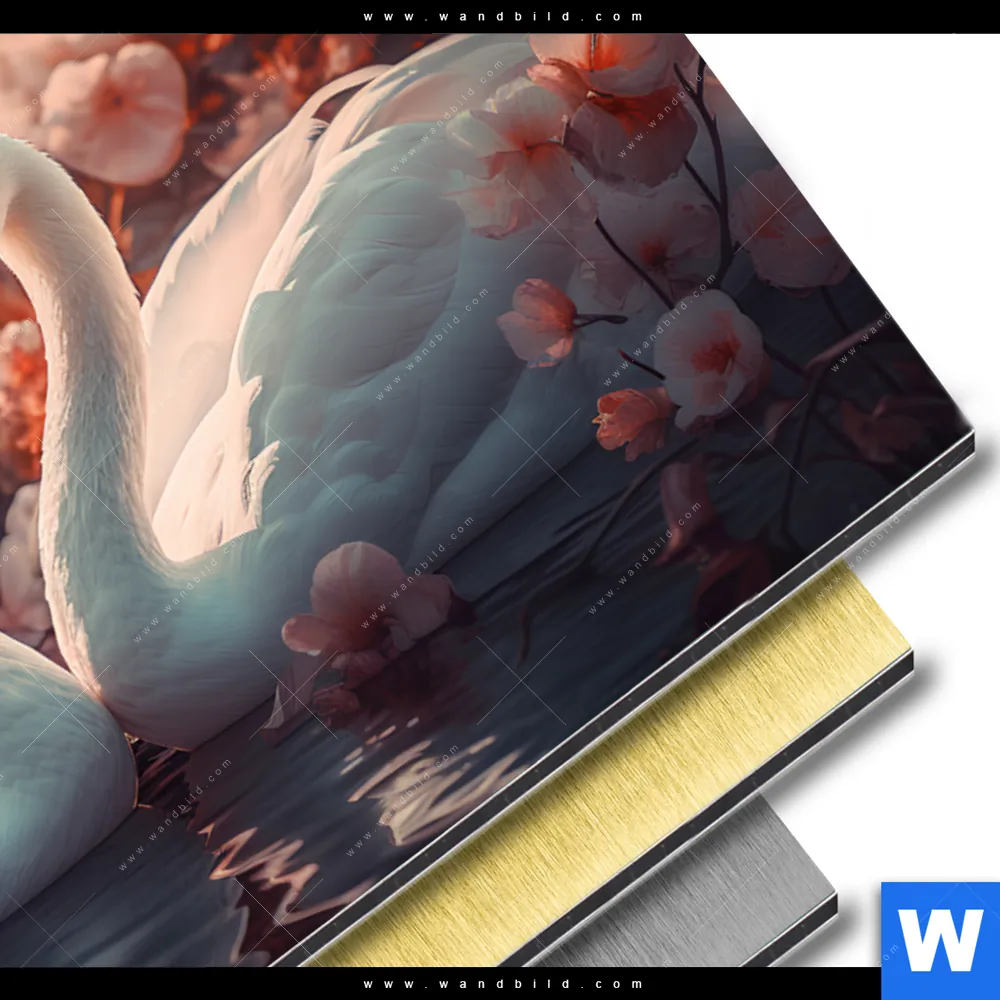 Alu-Dibond Bild | Zwei Schwäne im Wasser | Querformat